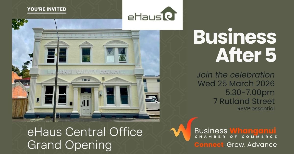 Celebrate with eHaus as they open their new Central Office in Whanganui at this month’s Business After 5.